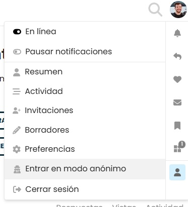 - En la sección de perfil, selecciona “Entrar en modo anónimo”.